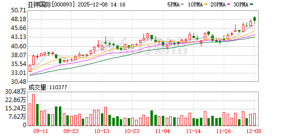 股票行情快报:亚钾国际(000893)12月5日主力资金净买入524.04万元