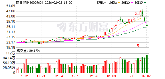 公司股价与交易表现 - 锡业股份在2月2日股价跌停,当日成交额达到38.29亿元 [1] - 盘后龙虎榜数据显示,有四家机构专用席位合计卖出4.73亿元 [1] 主要市场参与者交易行为 - 深股通席位在当日买入4.56亿元并卖出1.2亿元 [1] - 有三家机构专用席位合计净买入2.31亿元 [1]