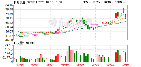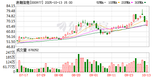 10月13日,浪潮信息大宗交易成交2.87万股,成交额202.28万元,占当日总成交额的0.03%,成交价 70.48元,较市场收盘价70.48元持平。 | 交易日期 | 证券代码 | 证券简称 | 成交价格 | 成交量 | 成交金额 | 买方营业部 | 卖方营业部 | | --- | --- | --- | --- | --- | --- | --- | --- | | | | | (元) | (万股/万份) | (万元) | | | | 2025-10-13 | 000977 | 浪潮信息 | 70.48 | 2.87 | 202.28 机构专用 | | 中信证券股份有限 公司上海分公司 | ...