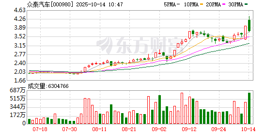 汽车整车板块震荡拉升,众泰汽车触及涨停