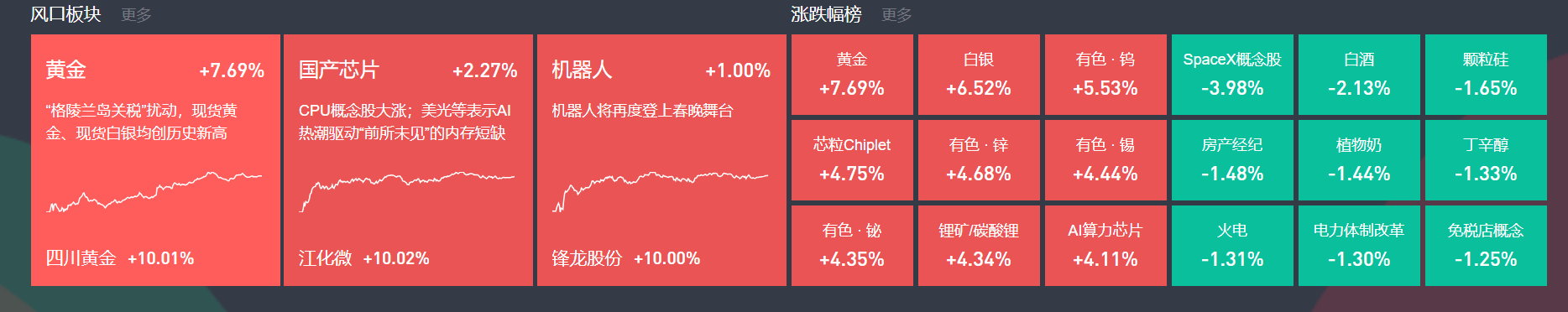 1月21日主题复盘 | 黄金股大涨,CPU概念发酵,机器人板块持续活跃