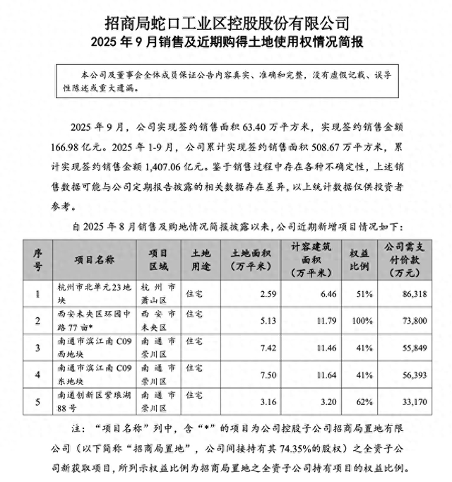 招商蛇口前9月销售金额1407亿元 单月销售167亿元