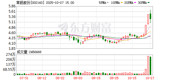 常铝股份涨停,机构龙虎榜净买入95.95万元