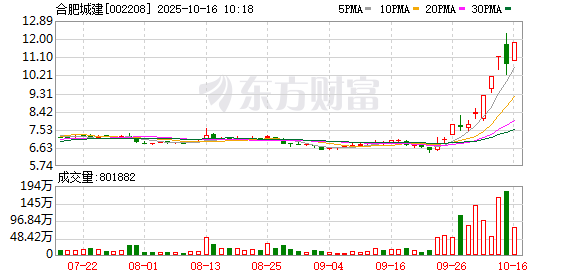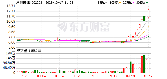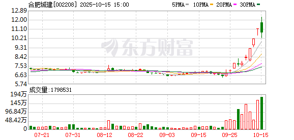 | 日期 | 当日涨跌幅(%) | 换手率(%) | 主力资金净流入(万元) | | --- | --- | --- | --- | | 2025.10.15 | -3.59 | 22.40 | -8148.01 | | 2025.10.14 | 9.97 | 20.12 | -8386.77 | | 2025.10.13 | 9.99 | 6.61 | 276.56 | | 2025.10.10 | 10.04 | 12.23 | 11408.78 | | 2025.10.09 | 7.31 | 17.37 | 10747.65 | | 2025.09.30 | 2.23 | 10.44 | 399.62 | | 2025.09.29 | -1.80 | 13.82 | -5497.32 | | 2025.09.26 | 10.06 | 6.43 | 16993.84 | | 2025.09.25 | 2.92 | 7.17 | 574.00 | | 2025.09.24 | 5.70 | 6.54 | 9617.53 | (文章来源:证券时报网) 据天眼查APP显示,合肥城建发展股份有限公司成立于1999 ...