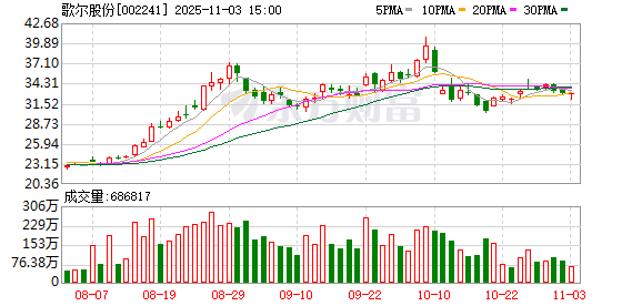 歌尔股份:截至10月底累计斥资9.4亿回购0.96%股份