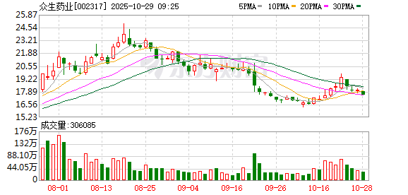 10月28日,众生药业盘中下跌2.05%,截至10:57,报17.66元/股,成交2.31亿元,换手率1.70%,总市值 150.10亿元。 资金流向方面,主力资金净流出3910.54万元,特大单买入223.66万元,占比0.97%,卖出1849.87万元, 占比8.02%;大单买入2926.63万元,占比12.69%,卖出5210.96万元,占比22.59%。 众生药业今年以来股价涨47.78%,近5个交易日跌3.97%,近20日跌4.64%,近60日跌1.56%。 截至6月30日,众生药业股东户数8.99万,较上期减少1.32%;人均流通股8470股,较上期增加1.33%。 2025年1月-6月,众生药业实现营业收入13.00亿元,同比减少4.74%;归母净利润1.88亿元,同比增长 114.96%。 分红方面,众生药业A股上市后累计派现20.19亿元。近三年,累计派现5.02亿元。 机构持仓方面,截止2025年6月30日,众生药业十大流通股东中,香港中央结算有限公司位居第四大流 通股东,持股917.31万股,为新进股东。兴全合丰三年持有混合(009556)位居第六大流通股东,持股 875.44万股,相比 ...