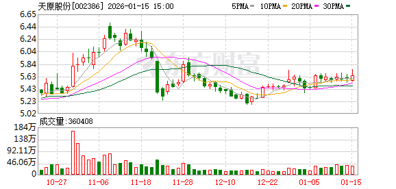 股市必读:天原股份(002386)1月15日主力资金净流入762.27万元