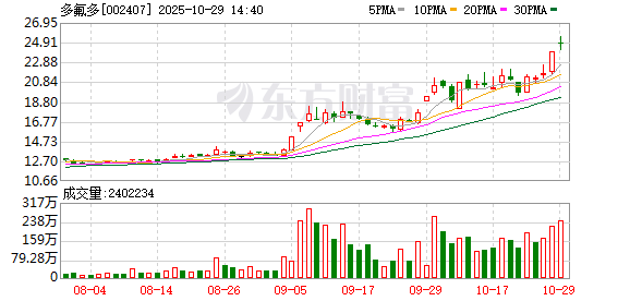 公司股价表现 - 公司股价于10月28日强势涨停,最新价格为23.95元/股,总市值达285亿元 [1] - 四季度以来公司股价累计涨幅已超过77% [1] - 当日换手率达16.78%,成交金额为42.13亿元 [2] 公司财务业绩 - 前三季度实现营收约67.29亿元,净利润7805.46万元,同比大增407.74% [2] - 第三季度实现营收约24亿元,同比增长约5.18%,净利润2672.44万元 [2] 六氟磷酸锂业务 - 公司拥有六氟磷酸锂产能6.5万吨,预计今年全年出货量在5万吨左右,2026年出货量预计在6万至7万吨之间 [3] - 六氟磷酸锂价格从9月的5.68万元/吨快速上涨至10月的6.88万元/吨,涨幅超21%,散单市场价格已升至9万元/吨 [3] - 价格上涨由下游新能源与储能产业需求爆发、供给端产能集中且扩产谨慎及原材料价格波动共同推动 [3] - 公司目前有2万吨六氟磷酸锂产能在建,正按计划稳步推进 [3] 新能源电池业务 - 公司聚焦大圆柱电池领域,主攻轻型车、储能、便携式电源等细分市场,目前订单饱满,处于满产满销状态 [4] - 预计今年底建成22GWh产能,明年第一季度形成30GWh产能,年底计划建成50GWh左右产能 [4] - 今年预计电池出货10GWh左右,2026年计划出货30GWh [4] - 电池板块已于今年前三季度实现盈利,四季度随着产能释放预计盈利将进一步增长 [4] - 总投资150亿元的氟芯电池全产业链项目正式签约,将新增100GWh大圆柱电池产能,预计达产后产值可达300亿元 [4] 半导体材料业务 - 公司是国内首个突破UPSSS级氢氟酸生产技术并供货台积电的企业 [4] - 现有半导体级氢氟酸产能2万吨,稳定供应三星电子、合肥长鑫等多家半导体企业 [4] 行业竞争格局 - 天赐材料是全球六氟磷酸锂产能最大的企业,产能为11.2万吨/年 [5] - 多氟多和天际股份分别拥有产能6.5万吨/年、3.7万吨/年,产能规模显著领先于其他竞争对手 [5] - 行业呈现强者恒强,集中度持续提升的局面 [5]