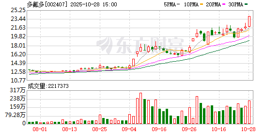 多氟多涨停,龙虎榜上机构买入2.35亿元,卖出1.57亿元