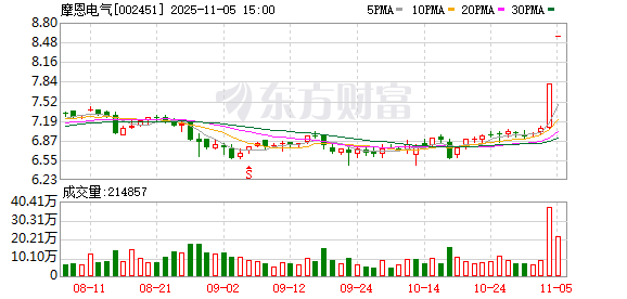 摩恩电气11月5日发布公告,股票交易价格连续3个交易日内收盘价格涨幅偏离值累计超过20%,根据 《深圳证券交易所交易规则》的有关规定,属于股票交易异常波动情形。经核实,近期公司经营情况正 常,内外部经营环境未发生重大变化。公司及控股股东、实际控制人不存在关于公司的应披露而未披露 的重大事项,或处于筹划阶段的重大事项。公司未发现近期公共传媒报道了可能或已经对公司股票交易 价格产生较大影响的未公开重大信息。股票交易异常波动期间,公司控股股东、实际控制人不存在买卖 公司股票的行为。 ...