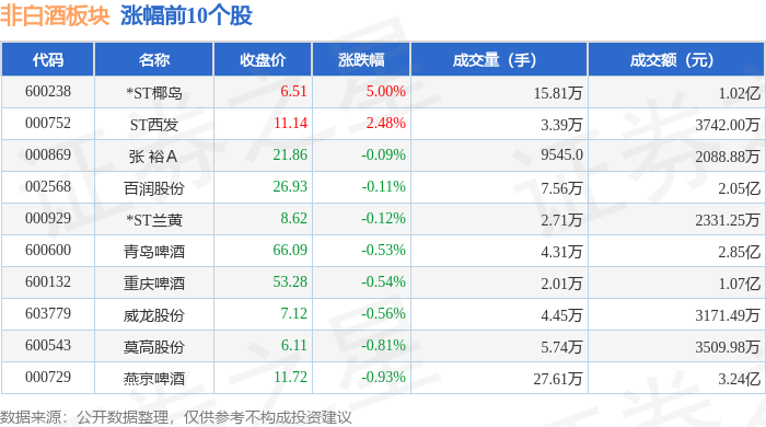 非白酒板块方面,本周出季报的燕京啤酒和珠江啤酒双双出现调整,两只个股周跌幅分别达7.57%和6.61%,而另一只出季报的惠泉啤酒则小幅下跌0.94%。 从黄酒板块来看,会稽山和古越龙山同样跌幅明显,会稽山跌幅高达8.16%,为酿酒板块表现最弱的个股。 在"低预期、弱现实"的状态下,本周Wind白酒指数再度回调,周跌1.23%,以59343.67点报收。其中,山西汾酒周跌5.88%,表现最差;舍得酒业、珍酒李渡 以及泸州老窖周跌幅也均超过3%,回调幅度相对较大。下周,白酒三季报将密集披露,行业生态将由业绩来验证。酿酒板块集体低迷 在A股主要股指全线反弹下,白酒板块再次成为资金撤离的主要方向。本周,Wind白酒指数周跌1.23%,以59343.67点报收。其中,头部酒企回调幅度较 大,山西汾酒周跌幅达到5.88%,泸州老窖周跌幅达到3.53%,古井贡酒和洋河股份周跌幅也均超过1%。不过,二三线酒企本周相对抗跌,保健酒代表*ST 椰岛周涨幅达9.05%,皇台酒业、天佑德酒以及金种子酒周涨幅则超1%。 封面图片来源:每日经济新闻 资料图 的确,以珠江啤酒为例,公司前三季度净利润同比增长17.05%,啤酒销量增1.83 ...