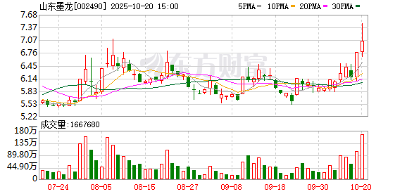每经AI快讯,10月17日,港股山东墨龙(00568.HK)午后一度涨超9%,公司A股涨停。截至发稿,涨 7.11%,报4.37港元,成交额6.18亿港元。 ...