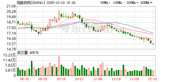 | 证券代码:002541 | 证券简称:鸿路钢构 | 公告编号:2025-104 | | --- | --- | --- | | 债券代码:128134 | 债券简称:鸿路转债 | | 安徽鸿路钢结构(集团)股份有限公司 关于预计触发"鸿路转债"转股价格向下修正条件的 提示性公告 本公司及董事会全体成员保证信息披露内容的真实、准确和完整,没有虚 假记载、误导性陈述或重大遗漏。 特别提示: 5、自 2025 年 12 月 1 日起至 2025 年 12 月 12 日,公司股票已有 10 个交易日的 收盘价格低于当期转股价格的 85%。若后续公司股票收盘价格继续低于当期转股 价格的 85%,预计将有可能触发转股价格向下修正条件。 一、可转换公司债券发行上市概况 1、可转换公司债券发行情况 经中国证券监督管理委员会"证监许可[2020]1983 号"文核准,安徽鸿路 钢结构(集团)股份有限公司(以下简称"公司")于 2020 年 10 月 9 日公开发 行了 1,880 万张可转换公司债券,每张面值为人民币 100 元,发行总额 18.80 亿元,期限六年。 2、可转换公司债券上市情况 经深圳证券交易所"深证上[ ...