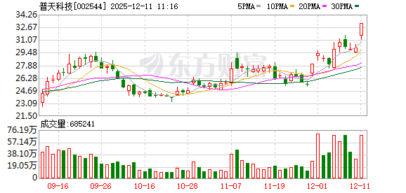 数据宝统计,截至10:41,普天科技成交额21.61亿元,创上市以来新高。最新股价上涨10.00%,换手率 9.79%。上一交易日该股全天成交额为9.35亿元。 据天眼查APP显示,中电科普天科技股份有限公司成立于1994年11月19日,注册资本68053.389万人民 币。(数据宝) (文章来源:证券时报网) ...