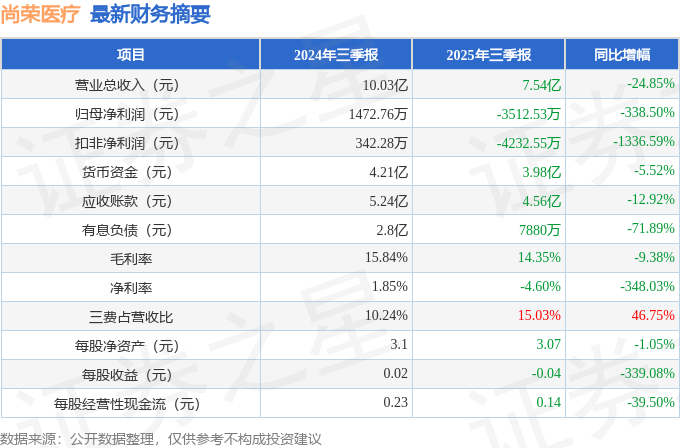 尚荣医疗(002551)2025年三季报简析:净利润同比下降338.5%,三费占比上升明显