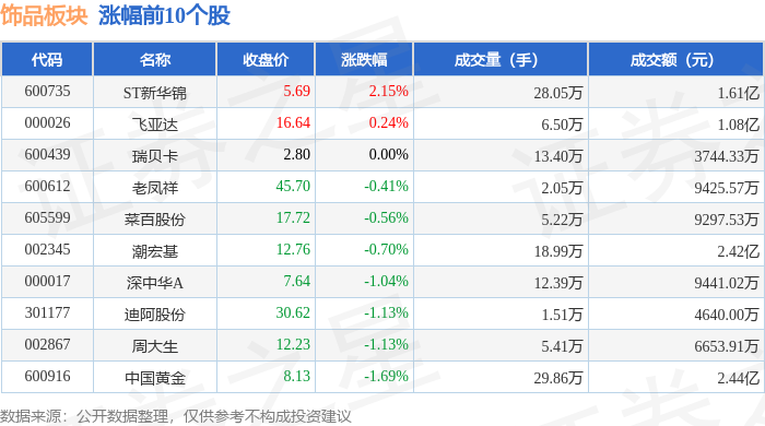 饰品板块1月13日涨0.69%,明牌珠宝领涨,主力资金净流出3446.03万元