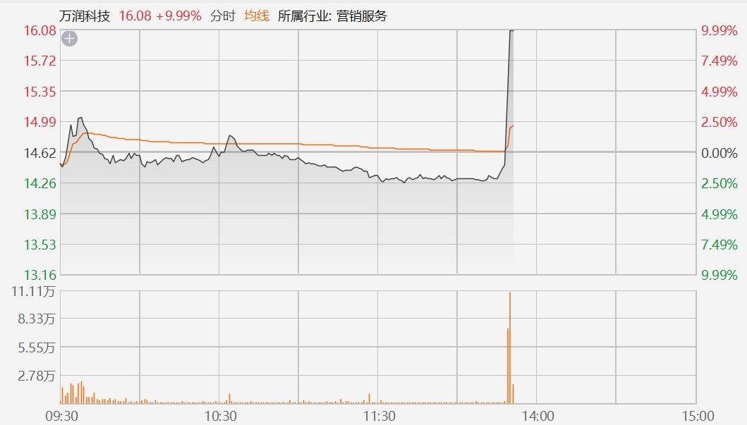 万润科技直线拉升封涨停板,报16.08元,截至目前成交超10亿元