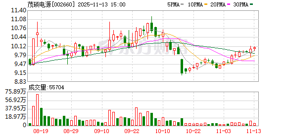 茂硕电源跌2.08%,成交额4104.47万元,主力资金净流出547.61万元