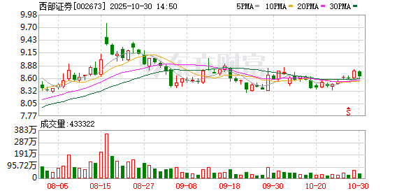 证券代码:002673 证券简称:西部证券 公告编号:2025-085 西部证券股份有限公司 第六届董事会第二十三次会议决议公告 本公司及董事会全体成员保证信息披露的内容真实、准确、完整, 没有虚假记载、误导性陈述或重大遗漏。 一、董事会会议召开情况 西部证券股份有限公司(以下简称"公司")于2025年10月24 日以电子邮件结合电话提示的方式,向公司第六届董事会全体董事发 出了召开第六届董事会第二十三次会议的通知及议案等资料。2025 年10月30日,本次会议在陕西省西安市东新街319号8幢公司总部会议 室以现场会议结合视频、通讯表决方式召开。 会议由公司董事长徐朝晖女士主持。本次会议应出席董事10人, 实际出席董事10人,其中吴春先生、郑智先生、张博江先生、黄宾先 生、羿克先生通过视频方式出席会议,陈强先生、孙薇女士以通讯表 决方式出席,其余董事现场出席会议。公司监事和有关人员列席本次 会议。本次会议召开及表决程序符合《公司法》和《公司章程》的有 关规定,会议合法有效。 二、董事会会议审议情况 本次会议审议并通过了以下事项: 1、审议通过了修订《西部证券股份有限公司章程》的提案。 表决结果:同意10票、反 ...