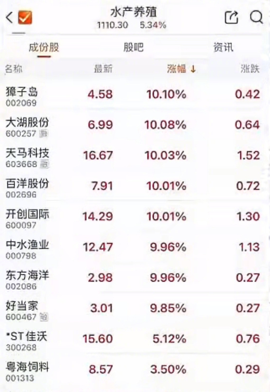 A股水产板块大涨8.97%,国联水产等多股涨停