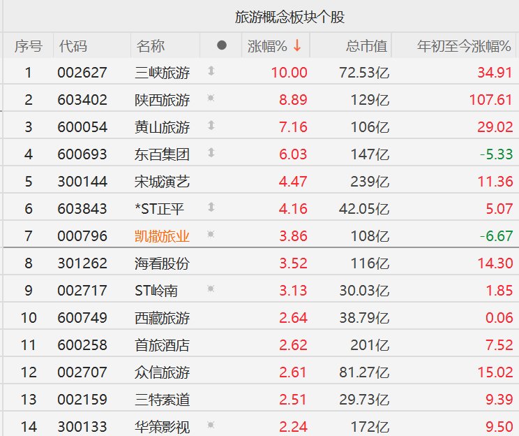 A股旅游股走强,三峡旅游涨停,陕西旅游涨超8%