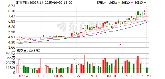 贵金属板块10月20日跌6.12%,湖南白银领跌,主力资金净流出15.37亿元