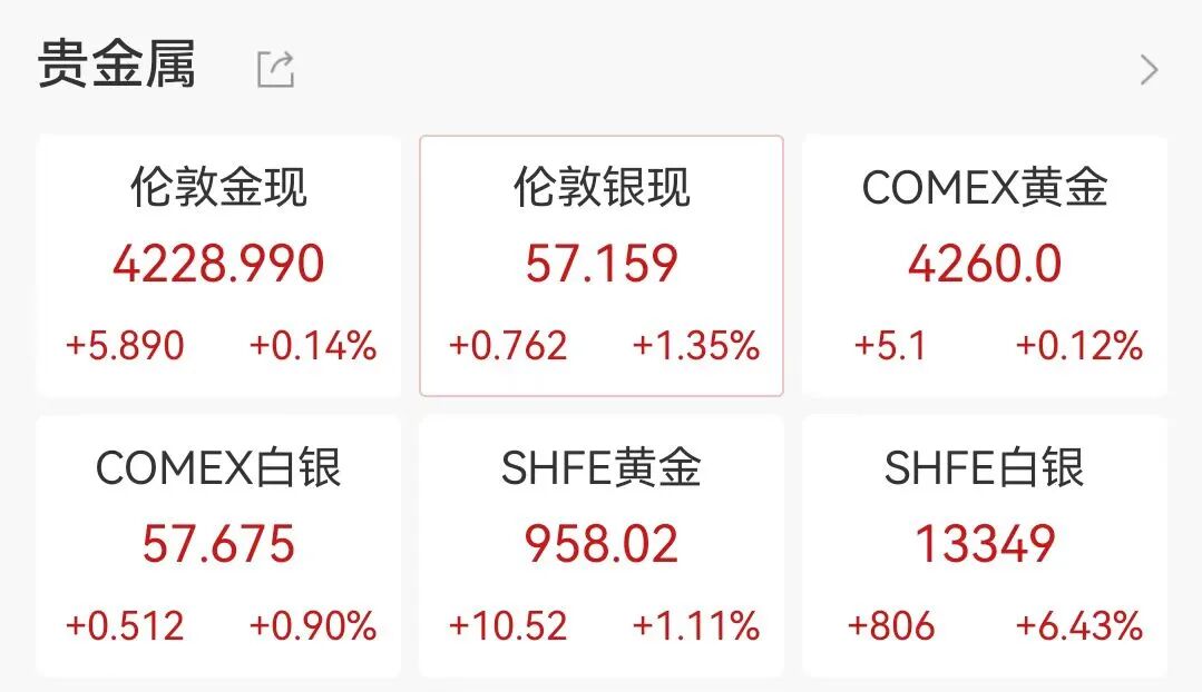 贵金属市场表现 - 12月1日早盘,贵金属板块持续上涨,现货白银历史首次触及57美元/盎司,日内涨幅超过1%,年内涨幅超过98% [1] - COMEX白银价格首次突破58美元/盎司,上海期货交易所白银主力合约涨幅超过6%,续创新高 [1] - A股市场贵金属概念股同步拉升,白银有色涨停,兴业银锡、湖南白银、豫光金铅、盛达资源等公司股价跟涨 [1] - 黄金价格同步走强,市场对美联储12月降息预期升温,美元指数下跌,纽约期金突破4260美元/盎司,日内涨0.12%,现货黄金涨至4228美元/盎司 [1] 主要资产价格数据 - 截至发稿时,伦敦现货黄金报4228.990美元/盎司,上涨5.890美元,涨幅0.14% [2] - 伦敦现货白银报57.159美元/盎司,上涨0.762美元,涨幅1.35% [2] - COMEX黄金报4260.0美元/盎司,上涨5.1美元,涨幅0.12% [2] - COMEX白银报57.675美元/盎司,上涨0.512美元,涨幅0.90% [2] - 上海期货交易所黄金报958.02元/克,上涨10.52元,涨幅1.11% [2] - 上海期货交易所白银报13349元/千克,上涨806元,涨幅6.43% [2] - 加密货币市场出现下跌,比特币跌至87000美元关口,日内跌幅超过4%,以太坊跌至2800美元左右,跌幅超过5% [2] 加密货币市场动态 - 主要加密货币价格普遍下跌,比特币报87312美元,24小时跌幅4.05% [3] - 以太坊报2847.12美元,24小时跌幅5.40%,Solana报128.29美元,跌幅5.96% [3] - XRP、HYPE、DOGE、ADA等加密货币24小时跌幅均在5%至10%以上 [3] - 过去24小时内,全球共有180,325名加密货币交易者被强制平仓,爆仓总金额达5.37亿美元 [3] - 其中,过去1小时爆仓金额为2.16亿美元,过去4小时为4.35亿美元,过去12小时为4.77亿美元 [4] - 多单爆仓金额显著高于空单,例如24小时内多单爆仓4.72亿美元,空单爆仓6504.30万美元 [4] 宏观市场背景 - 上周,随着市场对美联储12月降息预期的升温,美股、美债、大宗商品及加密货币等几乎所有类别资产均出现协同上涨 [4] - 根据CME联邦基金利率期货数据,市场押注美联储12月降息25个基点的概率已飙升至80%以上 [5] - 美联储已进入静默期,为12月9日至10日的议息会议做准备,期间官员不再公开发声 [5] - 市场焦点转向即将发布的美国9月个人消费支出价格指数报告,该指标是美联储最关注的核心通胀数据 [5] - 市场预计美国9月核心PCE同比增速将维持在2.9%的高位 [5]