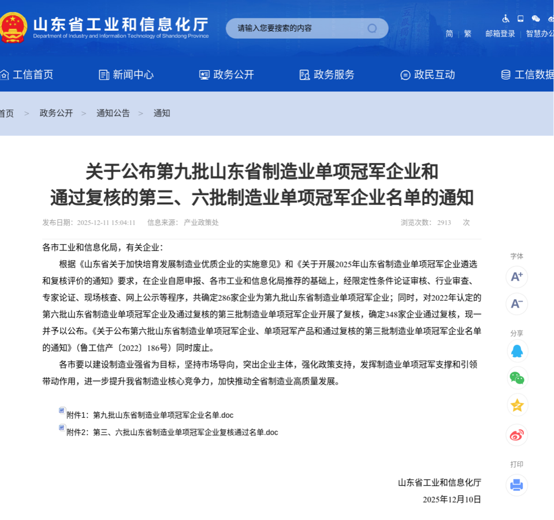 山东省临沂市罗庄区新增2家省级制造业单项冠军企业