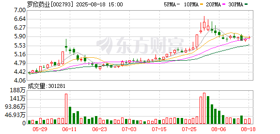 股价表现 - 截至2025年8月6日15时,罗欣药业股价报5 95元,较前一交易日下跌1 49% [1] - 当日成交量为725895手,成交金额达4 35亿元,振幅为5 30% [1] 行业与业务 - 罗欣药业属于化学制药行业,主营业务涵盖药品研发、生产和销售 [1] - 公司产品线包括抗感染类、消化系统类、呼吸系统类等药品 [1] 股东情况 - 2025年7月18日至7月31日期间,罗欣药业股东户数大幅增加3 17万户,增幅达88 04% [1] - 截至7月31日,公司股东总数为6 78万户,户均持有流通股市值为10 42万元 [1] 资金流向 - 2025年8月6日,罗欣药业主力资金净流出2609 09万元 [1] - 近五日累计净流出2239 22万元 [1]