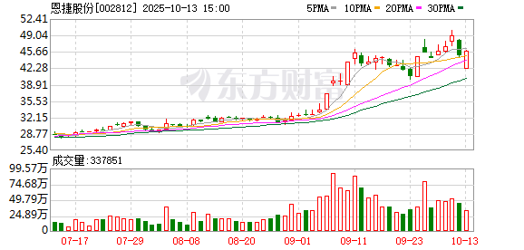 股价表现与资金流向 - 10月15日盘中股价下跌2.01%至42.38元/股,成交1.63亿元,换手率0.47%,总市值410.31亿元 [1] - 当日主力资金净流出1987.13万元,特大单净卖出737.75万元,大单净卖出1249.38万元 [1] - 公司今年以来股价上涨32.48%,近5个交易日下跌9.25%,近20日上涨7.02%,近60日上涨50.34% [1] - 今年以来两次登上龙虎榜,最近一次为9月24日,龙虎榜净买入2.80亿元,买入总额5.55亿元(占总成交额33.70%),卖出总额2.75亿元(占总成交额16.70%) [1] 公司业务与财务概况 - 公司主营业务包括锂电池隔离膜、无菌包装、BOPP薄膜等,锂电池隔离膜是核心业务,占主营业务收入83.64% [2] - 2025年1-6月实现营业收入57.63亿元,同比增长20.48%,但归母净利润为亏损9311.38万元,同比减少131.99% [2] - A股上市后累计派现28.25亿元,近三年累计派现18.74亿元 [3] - 所属申万行业为电力设备-电池-电池化学品,概念板块包括固态电池、锂电池、宁德时代概念等 [2] 股东结构与机构持仓 - 截至2025年6月30日,公司股东户数为10.09万户,较上期增加4.23%,人均流通股8086股,较上期减少4.22% [2] - 香港中央结算有限公司为第四大流通股东,持股3058.94万股,较上期增加626.70万股 [3] - 泉果旭源三年持有期混合A(016709)为第五大流通股东,持股2743.13万股,持股数量较上期未变 [3]