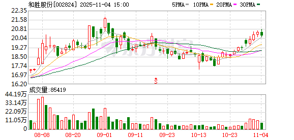 11月4日,和胜股份盘中下跌2.09%,截至10:44,报20.11元/股,成交8949.11万元,换手率2.32%,总市 值62.33亿元。 资金流向方面,主力资金净流出1119.37万元,特大单买入178.57万元,占比2.00%,卖出363.03万元, 占比4.06%;大单买入793.93万元,占比8.87%,卖出1728.84万元,占比19.32%。 和胜股份今年以来股价涨29.49%,近5个交易日涨4.58%,近20日涨7.25%,近60日涨15.31%。 今年以来和胜股份已经1次登上龙虎榜,最近一次登上龙虎榜为2月26日。 资料显示,广东和胜工业铝材股份有限公司位于广东省中山市三乡镇前陇工业区美源路5号,成立日期 2005年4月20日,上市日期2017年1月12日,公司主营业务涉及工业铝挤压材及深加工制产品的研发、生 产和销售。主营业务收入构成为:铝制品93.32%,其他(补充)5.33%,受托加工1.36%。 和胜股份所属申万行业为:有色金属-工业金属-铝。所属概念板块包括:小盘、汽车轻量化、富士康概 念、有色铝、融资融券等。 截至10月20日,和胜股份股东户数2.80万,较上期减少2.11%; ...