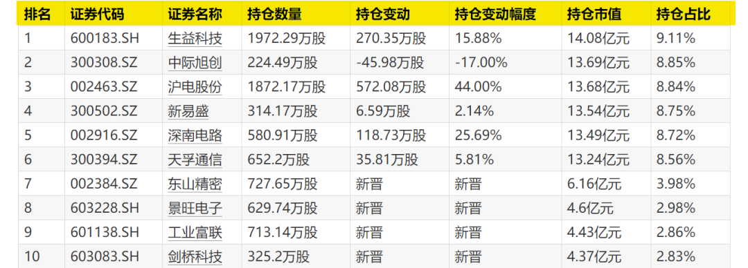 【导读】一批绩优基金四季报披露 随着公募四季报陆续披露,一些绩优基金经理的调仓换股"跃然纸上"。 去年四季度,不少绩优基金聚焦人工智能、云计算、机器人等投资方向。多位基金经理表示,展望2026年,对资本市场整体环境保持相对乐观,科技产业 仍将是结构性行情的重要方向。 也有基金经理进行提示风险,科技板块具有高成长性和高波动率,应该先讲风险,再谈收益,建议进行分散投资。 1月21日,由任桀管理的永赢科技智选披露四季报。该基金成立于2024年10月底,在2025年度取得233.29%的单位净值增长率,不仅在主动权益基金业绩 榜单上名列第一,更是摘得年度公募基金全市场冠军,且领先优势明显。 最新季报显示,截至2025年四季度末,该基金规模达154.68亿元,环比增长34.26%。该基金四季度股票仓位有所下降,从持仓情况看,其股票市值占基金 总资产比例为78.76%,较三季度末减少了13个百分点。 任桀在季报中表示,去年四季度,该基金继续聚焦全球云计算产业投资,在三季度判断的基础上(基于2027年新技术的兑现),结合全球AI产业前沿模 型和商业化进展进行投资应对。 具体来看,前十大重仓股中,生益科技、中际旭创、沪电股份 ...