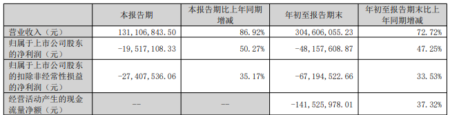 中国经济网北京12月2日讯 上海瀚讯(300762.SZ)日前发布了2025年三季度报告。 2025年前三季度,公司营业收入3.05亿元,同比增长72.72%;归属于上市公司股东的净利 润-4815.76万元,上年同期为-9129.53万元;归属于上市公司股东的扣除非经常性损益的净利润-6719.45 万元,上年同期为-1.01亿元;经营活动产生的现金流量净额-1.42亿元,上年同期为-2.26亿元。 | | 本报告期 | 本报告期比上年同期 | 年初至报告期末 | 年初至报告期末比上 | | --- | --- | --- | --- | --- | | | | 增减 | | 年同期增减 | | 营业收入(元) | 131, 106, 843. 50 | 86.92% | 304,606,055.23 | 72. 72% | | 归属于上市公司股东 的净利润(元) | -19.517,108.33 | 50. 27% | -48.157.608.87 | 47.25% | | 归属于上市公司股东 的扣除非经常性损益 | -27, 407, 536. 06 | 35.17% | -67, 194, 522, ...