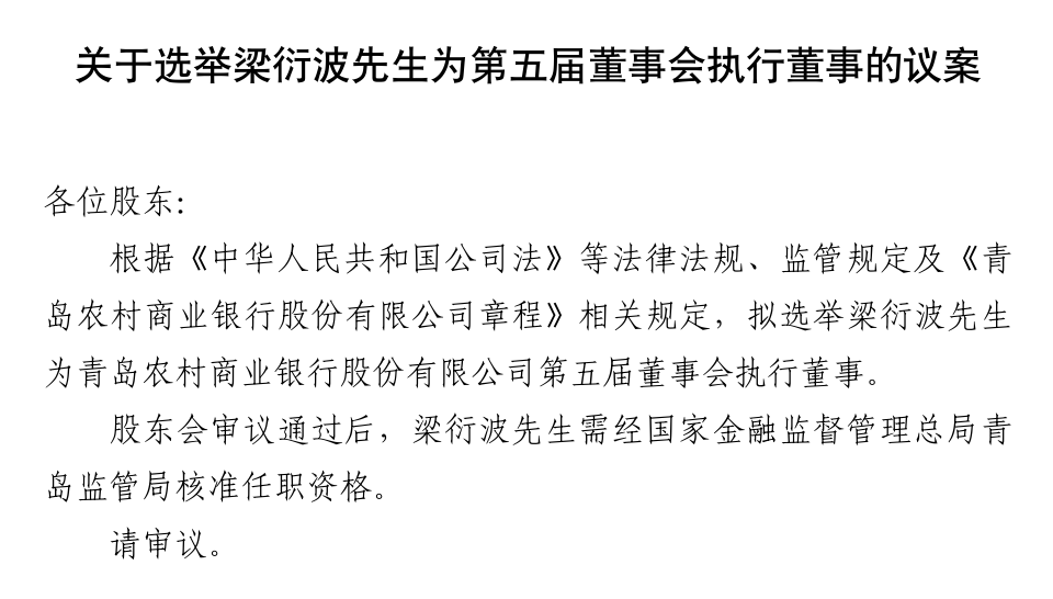 青岛农商行:因年龄原因,执行董事、副行长丁明来辞职