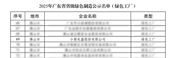 响应制造强国战略!小熊电器获评“广东省省级绿色工厂”