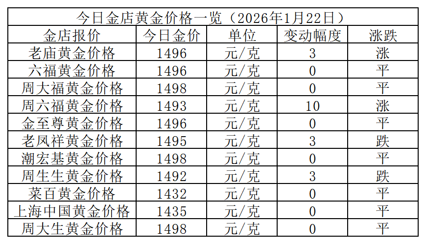 金价大涨后趋稳!2026年1月22日国内金店报价速递
