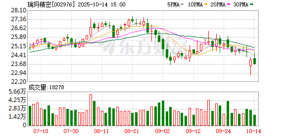 瑞玛精密股价涨5.36%,招商基金旗下1只基金位居十大流通股东,持有72.27万股浮盈赚取94.67万元