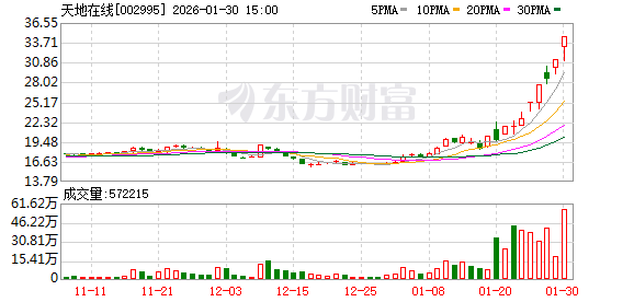 证券日报网讯 2月1日,天地在线发布公告称,公司股票连续2个交易日(2026年1月29日、2026年1月30 日)收盘价格涨幅偏离值累计超过20%,根据《深圳证券交易所交易规则》的相关规定,属于股票交易 异常波动情形。公司前期披露的信息不存在需要更正、补充之处;公司未发现近期公共传媒报道了可能 或已经对本公司股票交易价格产生较大影响的未公开重大信息。 (编辑 姚尧) ...