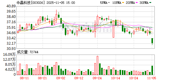 | | | | DOG | 003026 中晶科 | | | --- | --- | --- | --- | --- | --- | | �� | ◆ ◆ | * . . | 40.37 | | | | 40.00 | | | 39.77 | 32.324-2.15 - | | | | | | | * 71 9 日 | | | | | | 39.16 | | | | | | | 38.55 | 最高价 33.35 | # | | | | | | 最低价 31.82 | HEL | | | | | 37.94 | 振 幅 4.44% | 本 | | | | | 37.34 | 委 比 61.48% | 市容 | | | | | | 量 比 3.53 | 市容 | | | | | 36.73 | 52周最高 41.93 | 市冷 | | | | | 36.12 | 52周最低 22.83 | 年 | | | | | | 历史最高 87.67 | 涨 | | | | | 35.52 | 历史最低 11.29 | 跌 | | | | | 34.91 | 外 盘 1.93万手 | 内 | | | | | 34.30 | ...