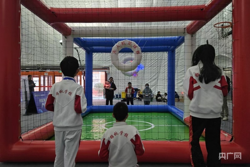 "我们的机器人上场的时候电量已经不太够了,只剩大概两格电了,而且我们没有备用电池,后面我们紧急借 用了人大附中队的电池,也非常感谢他们。"史睿文说。 无人机足球赛,穿过对方的圆圈得分(记者白杰戈 摄) 他说,胜利来自反复的训练和调试,他们也在从比赛中发现问题。"我们每周五都是有训练的,每次就是调一 下代码,然后再看一下它的参数的表现。我觉得比较难的一点就是两个机器人该如何进行团队合作,因为我们的 两个机器人一开始全都跑的是前锋,所以它们俩就会互相争球,导致出现一些失误。我们打算以后稍微修改一 下,把前锋修改成两个版本,一个更注重速度,另一个更注重稳度。" 央广网北京12月1日消息(总台中国之声记者白杰戈)据中央广播电视总台中国之声《新闻纵横》报道,11月 30日,北京市海淀区青少年机器人科普竞技活动在中国人民大学附属中学举行。海淀区是全国科技和教育发展水 平最高的地区之一,这里的中小学生操作机器人、运用AI(人工智能)的能力如何?对全国其他地区有哪些示范 和带动效应? 机器人对抗,场边的孩子们也要做好战术支持。人大附中早培六年级的黄梓轩用纸笔记录其他队伍的胜负和 特点。 "来,攻防转换,红方进攻,5、4、3、 ...