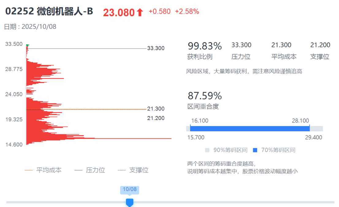 2024年,在自身研发和商业化至暗时刻叠加母公司治理问题拖累的双重暴击下,微创机器人-B(02252)股价一度沉底,但随着今年母公司股权结构变化,及 公司设备+耗材商业模式潜力逐步显现,微创机器人迎来了久违的行情。 智通财经APP观察到,微创机器人分别在今年的1-2月和9-10月走出两波大幅拉升行情,年内股价最高达到33.70港元,最大涨幅达到252.14%。 不过,急涨行情往往伴随着场内持筹者情绪的快速分歧,进而引发股价持续的技术面回归。今年10月8日盘中触及年内股价新高后,微创机器人股价持续下 跌,截至11月21日收盘,公司股价已跌回21.20港元,较此前高点跌去37.09%。 而场内投资者情绪也在此过程中从分歧转为一致。其中,港股通资金更是一反此前"越跌越买,越涨越卖"的操作,选择加仓抄底,也让市场对这只标的此次 的技术性反弹高度多了一份期待。 股价即将"深蹲起跳"? 实际上,分析微创机器人在今年10月中旬至11月中旬的下跌行情,不能仅着眼于单一的下行区间,而是应该从9月的一段上涨走势表现开始来看。 | 33.300 | | nne"cc 99.0570 | | 61.300 | LI.LUU | | ...