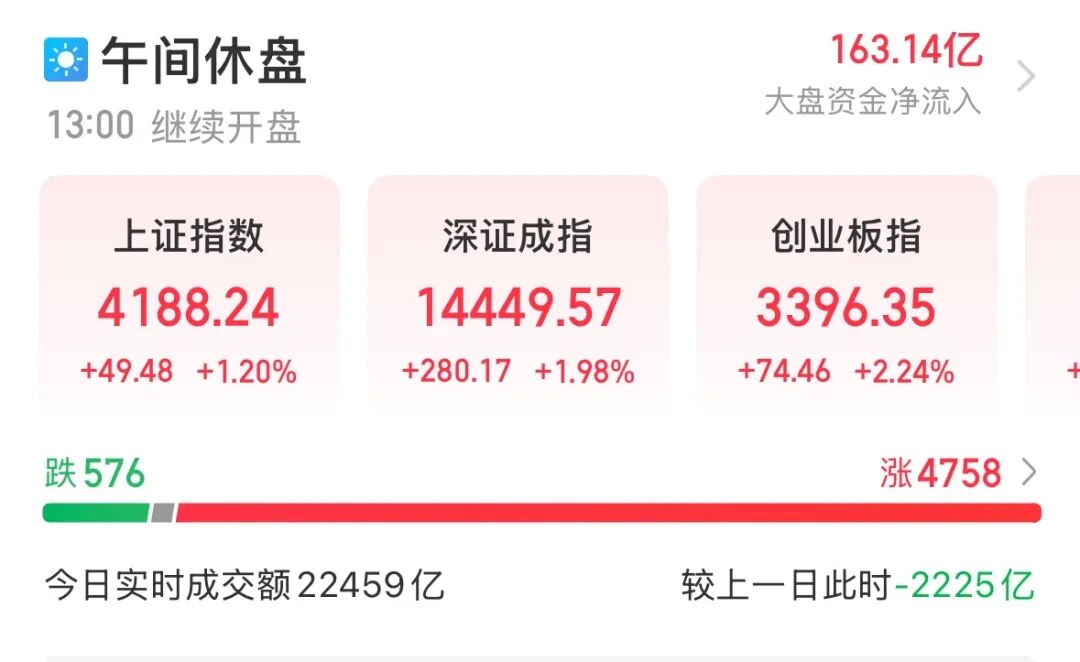 市场整体表现 - 1月14日早盘A股主要指数集体上涨,上证指数午间收盘报4188.24点,涨1.20%,深证成指、创业板指、科创综指分别涨1.98%、2.24%、3.55% [1] - 沪深北三市半日成交额达22459亿元,市场呈现普涨态势,超4700只个股上涨 [1][3] - 金风科技半日成交181.78亿元,位居A股成交额第一 [1] AI应用与GEO概念板块 - AI应用方向持续爆发,AI电商、GEO(生成式引擎优化)概念领涨,AIGC概念指数涨6.31%至2809.79点 [4][5][6] - 新“易中天”组合崛起,易点天下、中文在线、天龙集团午盘均涨超10%,值得买以20%幅度涨停,利欧股份实现4连板 [5] - 科大国创、光云科技、值得买均以20%涨停,易点天下涨17.47%,天龙集团涨16.52%,海大埔戸涨15.69%,会畅科技涨15.22%,中文在线涨13.72%,天源迪科涨12.50%,万兴科技涨11.89%,中控技术涨11.13%,山水比德涨10.56% [6][7] - 消息面上,谷歌于1月12日宣布与沃尔玛、塔吉特等全球头部零售商达成合作,并正式开源面向电商领域的AI智能体协议 [7] - 华源证券研报指出,GEO有望适配AI新入口时代的新型营销范式,通过优化内容提升品牌信息在AI生成答案中的引用率与可见度,建议关注快速推进布局的公司 [8] - 引力传媒回应其GEO事业部仍在组建筹划阶段,相关业务尚未形成成熟商业模式,未产生相关收入 [8] 半导体板块 - 半导体板块走高,圣晖集成、亚翔集成涨停 [3] 大金融板块 - 大金融板块震荡拉升,券商、互联网金融方向涨幅居前,华林证券涨停,同花顺盘中涨超10%并创历史新高,午盘收涨9.33%,指南针、湘财股份涨超5% [3][9][10][12] - 同花顺最新股价430.00元,指南针涨7.07%至153.50元,湘财股份涨5.53%至12.21元,金证股份涨5.41%至18.13元,东方财富涨4.82%至25.67元,中银证券涨4.17%至15.23元 [12] - 美银证券研报表示,中资券商股今年迎来五大核心主题,预计主要上市中资券商去年及今年盈利分别增长46%及15% [12] - 开源证券研报表示,监管政策进入“积极”周期,券商投行、公募基金和海外业务有望支持行业2026年盈利景气度,看好券商板块开年布局机会 [13] 商业航天板块 - 商业航天板块震荡反弹,七丰精工以30%幅度涨停,烽火电子、海格通信等多只个股涨停 [3]