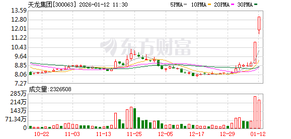 据天眼查APP显示,广东天龙科技集团股份有限公司成立于2001年01月02日,注册资本75852.715万人 民币。(数据宝) (文章来源:证券时报网) 数据宝统计,截至10:38,天龙集团成交额27.93亿元,创2024年12月17日以来新高。最新股价上涨 20.00%,换手率36.70%。上一交易日该股全天成交额为27.59亿元。 ...