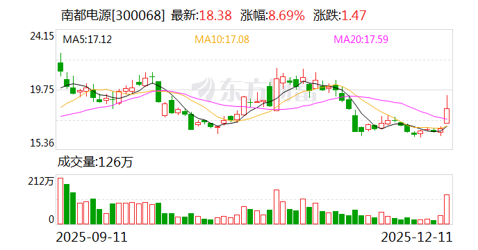 权威精选 筹划控制权变更,南都电源(300068)股票将停牌。12月11日,南都电源股价大涨近9%,报18.38元/股, 最新市值165.1亿元。 12月11日晚间,南都电源公告,公司于近日收到公司控股股东杭州南都电源有限公司、上海益都实业有 限公司、上海南都集团有限公司通知,获悉其正在筹划控制权变更、促进再生铅板块股权出售的相关事 宜。公司股票自12月12日开市起停牌,预计停牌时间不超过2个交易日。 据南都电源披露,目前各方尚未签署相关协议,拟就具体交易方案、协议等相关事项进行论证和磋商, 具体情况以各方签订的相关协议为准。停牌期间,公司将根据相关事项进展情况,严格按照法律法规的 有关规定及时履行信息披露义务。待上述事项确定后,公司将及时发布相关公告并申请复牌。 12月8日晚间,南都电源发布公告称,公司于近日完成了工商变更登记手续,并取得了浙江省市场监督 管理局换发的《营业执照》。此次变更涉及注册资本调整及公司章程修订事项。 南都电源公告显示,此次变更后,公司注册资本由原数额正式调整为8.98亿元,经营范围在原有基础上 保持稳定,涵盖电池制造、储能技术服务、新能源汽车废旧动力蓄电池回收等核心业务领域。 南都 ...