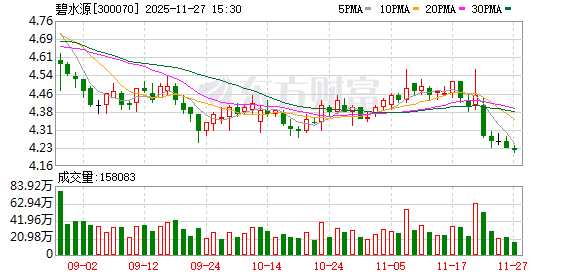 | 交易日期 | 证券代码 | 证券简称 | 成交价格 | 成交量 | 成交金额 (万元) | 买方营业部 | 卖方营业部 | | --- | --- | --- | --- | --- | --- | --- | --- | | | | | (元) | (万股/万份) | | | | | 2025-11-20 | 300070 | 碧水源 | 3.53 | 32.96 | 116.35 | 中航证券有限公司 | 国融证券股份有限 | | | | | | | | 深圳海德三道证券 | 公司深圳深南大道 | | | | | | | | 营业部 | 证券营业部 | 11月20日,碧水源大宗交易成交32.96万股,成交额116.35万元,占当日总成交额的0.41%,成交价3.53 元,较市场收盘价4.45元折价20.67%。 ...