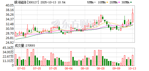 稀土永磁概念市场表现 - 稀土永磁概念板块在10月13日出现持续拉升行情 [1] - 银河磁体股价涨停 [1] - 包钢股份股价回封涨停 [1] - 北方稀土股价逼近涨停 [1] - 三川智慧、金力永磁、钢研纳克、大地熊、西磁科技等公司股价涨幅靠前 [1]