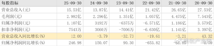 今日(10月28日), 青松股份 发布2025年前三季度业绩报告。 数据显示,青松股份前三季度实现营收15.53亿元,同比增长12.00%;净利润达1.11亿元,同比大幅增 长246.98%。 净利润增幅接近2.5倍,远高于营收0.12倍的增速,反映出青松股份的盈利能力显著增强,也传递出该公 司经营效率提升的积极信号。 值得关注的是,这也是青松股份近五年来前三季度首次实现营收与净利润同比"双增"。 在卷生卷死的美妆代工行业,青松股份何以实现业绩突围? 一五年首次!青松股份营收利润双增长 从近六年前三季度数据来看,青松股份的营业总收入呈现出先升后降的走势。 其2020年营收达到27.53亿元的高点后,连续四年下滑,至2024年前三季度已降至13.87亿元,而今年前 三季度营收回升至15.53亿元,同比增长12%,扭转了此前下行趋势。 | 每股指标 | 25-09-30 | 24-09-30 | 23-09-30 | 22-09-30 | 21-09-30 | 20-09-30 | | --- | --- | --- | --- | --- | --- | --- | | 营业总收入(元) | 15.53亿 | ...