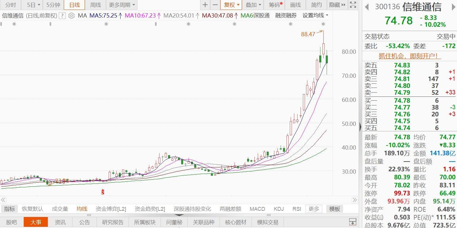 实控人高位套现或超8亿元,信维通信开盘跌超15%