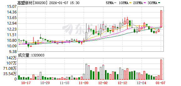 每经AI快讯,1月7日,高盟新材(300200)今日20cm涨停,成交额18.56亿元,换手率31.14%,盘后龙 虎榜数据显示,4家机构专用席位净买入1.61亿元。 ...