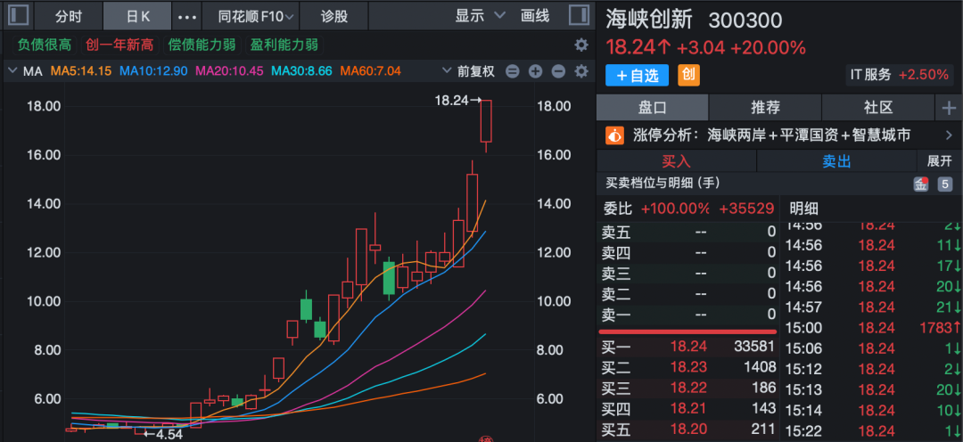 海峡创新在公告中强调,公司目前经营情况正常,主营业务未发生重大变化,且前期披露的信息不存在需要更正或补充之处。经向控股股东 等核实,不存在应披露而未披露的重大事项,也不存在处于筹划阶段的重大事项。此外,控股股东及实际控制人在股票异常波动期间未买卖 公司股票。 从业绩方面看,海峡创新今年三季度净利润仍处于亏损状态。据三季报显示,公司第三季度实现营业收入1933.78万元,同比增长2.25%; 归属于上市公司股东的净利润为亏损2260.59万元。前三季度实现营业收入9205.78万元,同比增长4.75%;归属于上市公司股东的净利润 为亏损1723.83万元。 值得一提的是,就在上周五,另外一只牛股合富中国也因短期涨幅过大宣布停牌核查。停牌核查前,合富中国多次发布公告提示风险,称公 司当前股价涨幅与公司经营业绩、行业情况严重偏离,提醒消费者勿受市场情绪过热影响,审慎投资。 海峡创新(300300) 11-17 20:56:24 深 融 | 18.24 | 所属行业:计算机 +1.92% > | | | | | 查看所属板块 > | | | --- | --- | --- | --- | --- | --- | -- ...